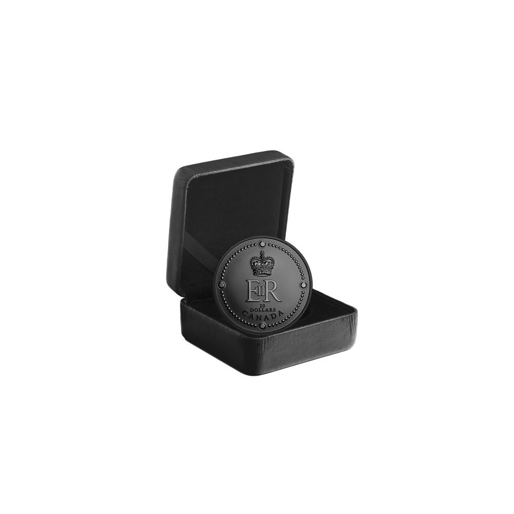 Un hommage cérémoniel à la reine Élisabeth II en argent pur 99,99 % plaqué rhodium noir.