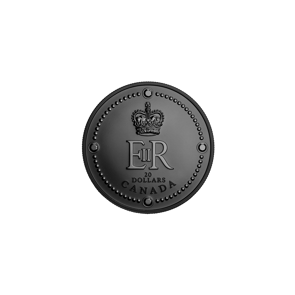 Le chiffre royal de la reine Élisabeth II est l'un des symboles les plus reconnaissables du règne historique, et la plupart des Canadiens sont habitués à le voir sur les insignes d'ordres, de décorations, de médailles et d'insignes. Le dispositif personnel de la reine Élisabeth II a été synonyme de couronne et a servi de symbole de souveraineté au Canada pendant 70 ans. Il a été recréé et préservé à jamais sur cet insigne en argent pur 99,99 % plaqué rhodium noir, qui rend hommage à la reine Élisabeth II, gardienne de la continuité qui a également propulsé la monarchie dans les temps modernes.