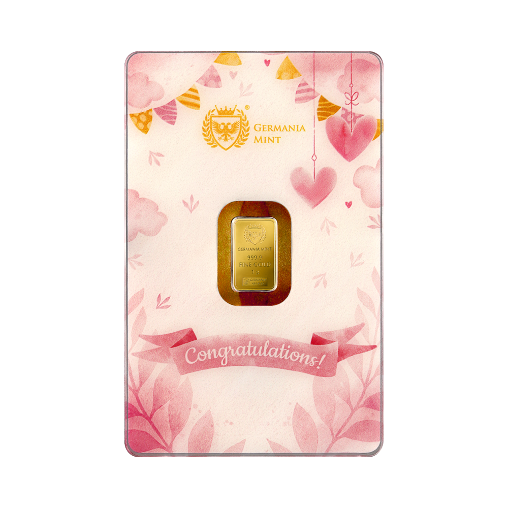 Germania Mint - Naissance d'un enfant (fille) - 1g - lingotin d'or cadeau
