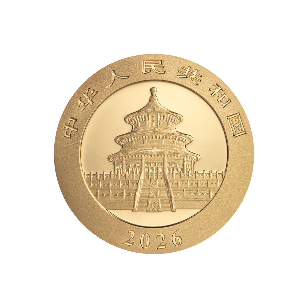Design du revers : Le revers représente l'emblématique Temple du Ciel, symbole de l'héritage chinois, ainsi que les inscriptions " République populaire de Chine " et l'année d'émission 2026.